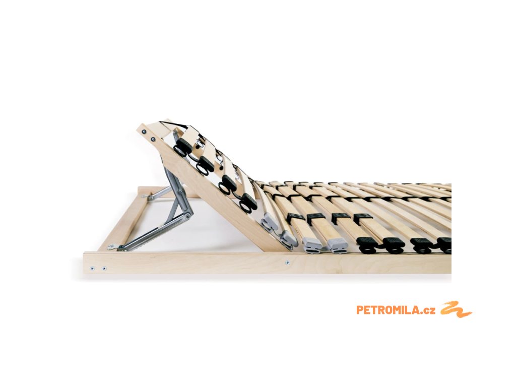 Rošt postele je díky rámu z masivního bukového dřeva a březovým lamelám pevný a odolný. Sedm komfortních zón poskytuje optimální podporu vašemu tělu. Oba konce lamel jsou drženy na místě gumovými uzávěry SBS pro lepší stabilitu celé konstrukce. Pevnost roštu si můžete přizpůsobit vašim potřebám díky 4 nastavitelným dvojitým lamelám ve středové zóně. Oblast pod hlavou je nastavitelná, takže si můžete pohodlně číst nebo sledovat televizi. Montáž je snadná.