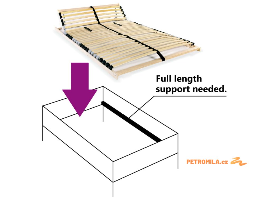 Upozorňujeme, že balení obsahuje pouze lamelový rošt; matrace ani rám postele nejsou součástí balení.