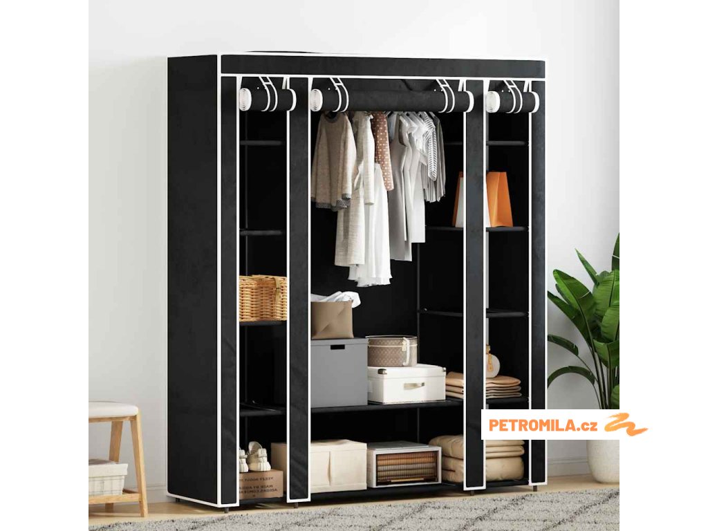 Látková šatní skříň s přihrádkami a tyčemi 45x150x176 cm černá