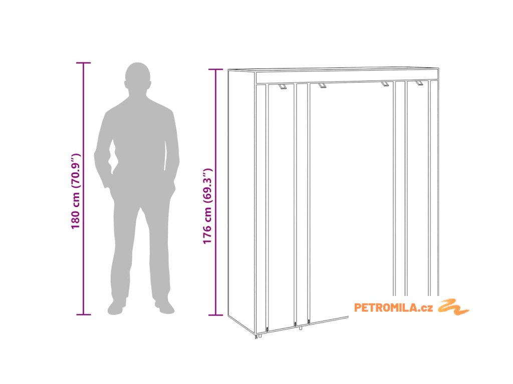 Tato přenosná skříň je určena pro ochrannou vašeho oblečení a bot od prachu a nečistot v suterénu, dětském pokoji, ložnici, v podkroví nebo při kempování. Tato látková skříň má několik přihrádek a tyče. Její rolovací dveře se upevňují pomocí suchých zipů a dají se snadno otevřít i zavřít na normální zip.