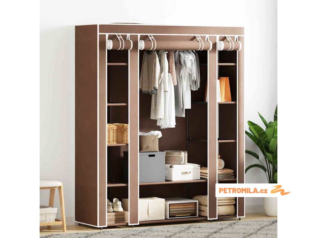 Látková šatní skříň s přihrádkami a tyčemi 45x150x176 cm hnědá