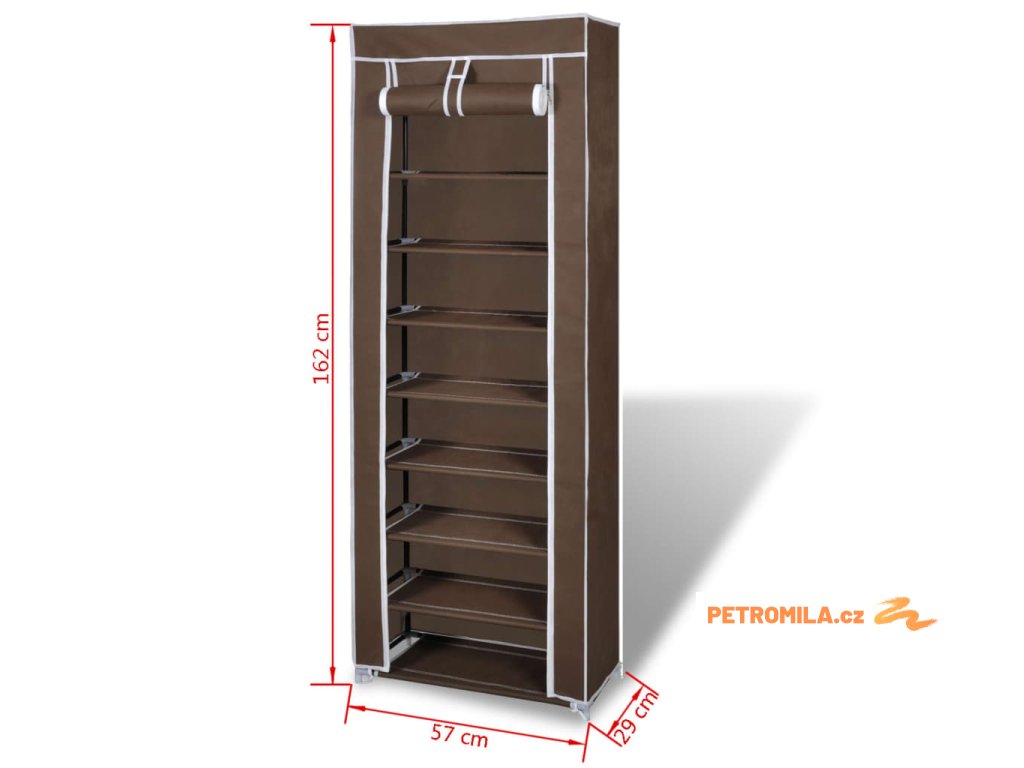 Látkový botník s dvířky - 57 x 29 x 162 cm - hnědý