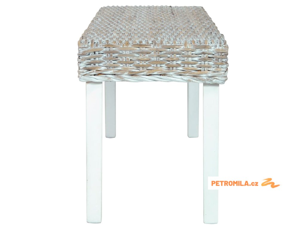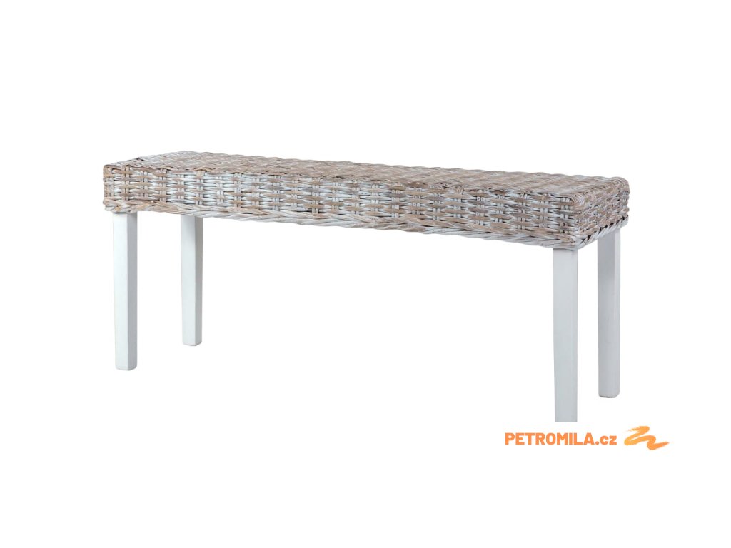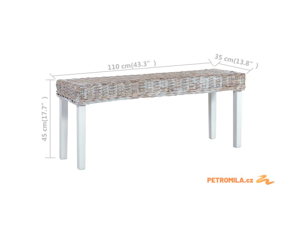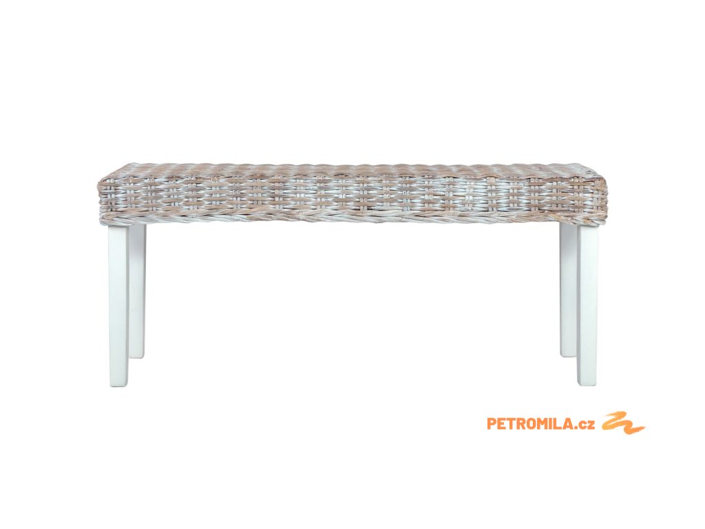 Lavice 110 cm bílý přírodní kubu ratan a masivní mahagon