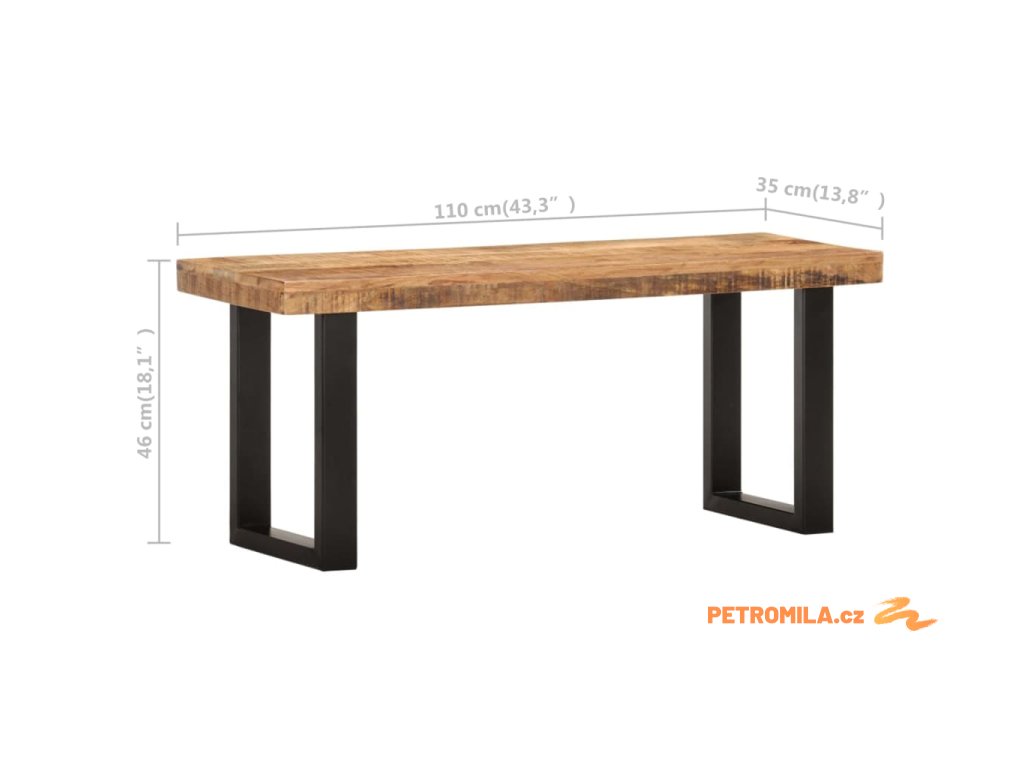 Lavice 110 cm masivní hrubé mangovníkové dřevo a ocel
