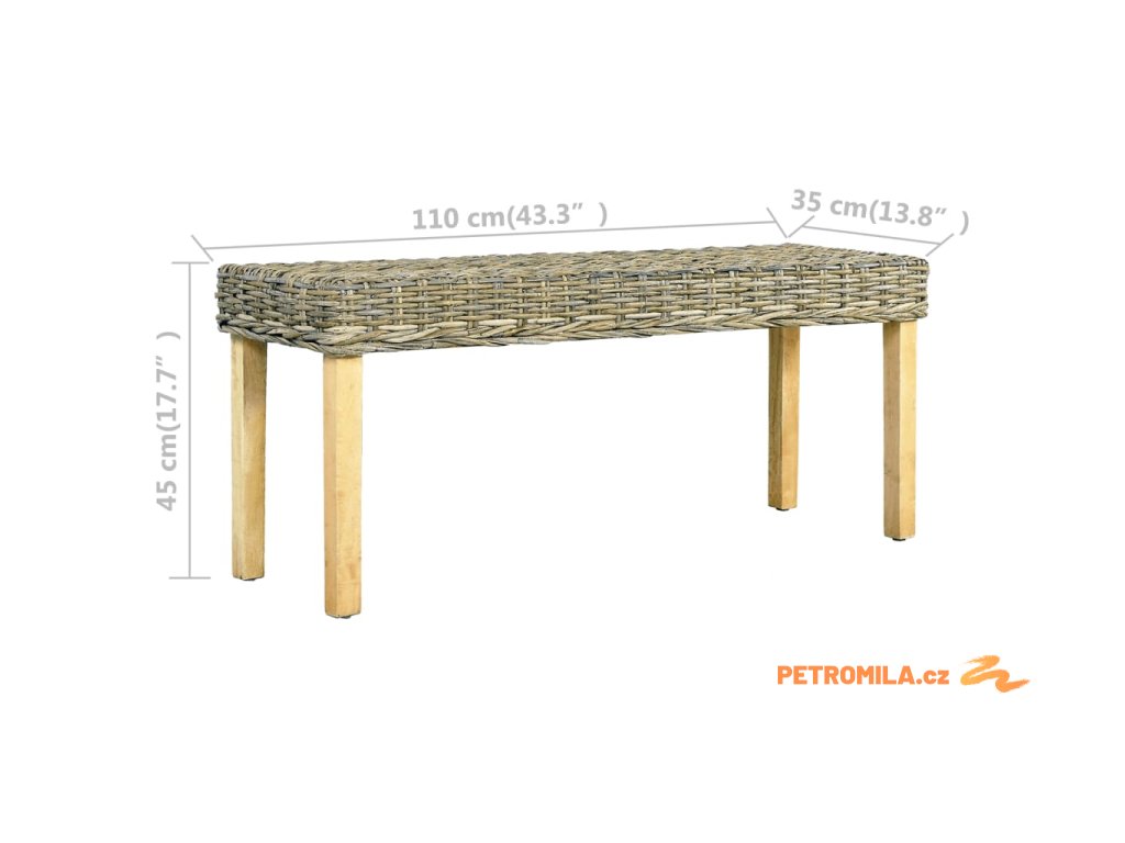 Lavice 110 cm přírodní kubu ratan a masivní mahagon