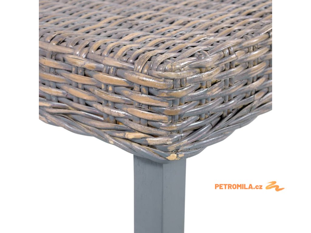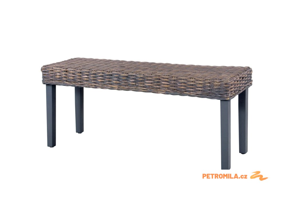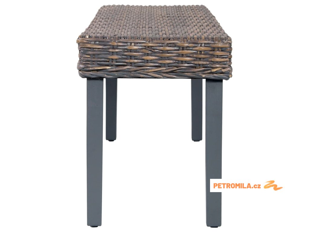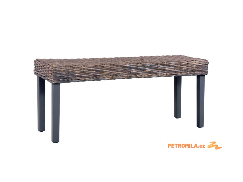 Lavice 110 cm šedá přírodní kubu ratan a masivní mahagon