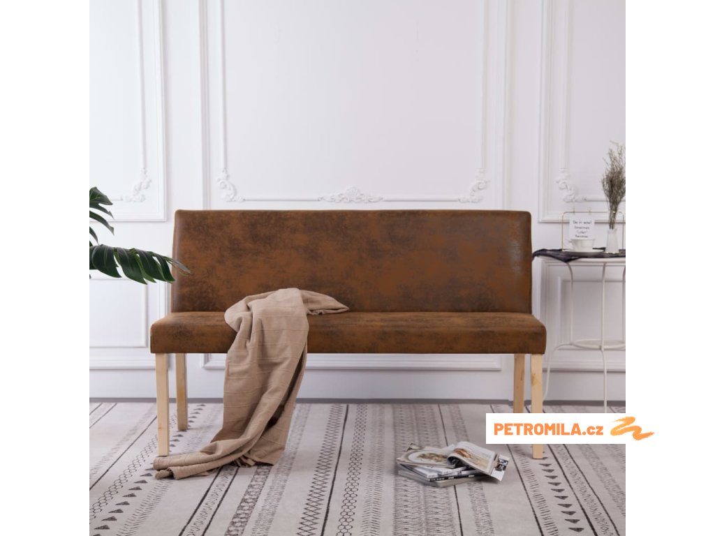 Lavice 139,5 cm hnědá umělá semišová kůže