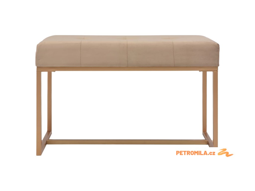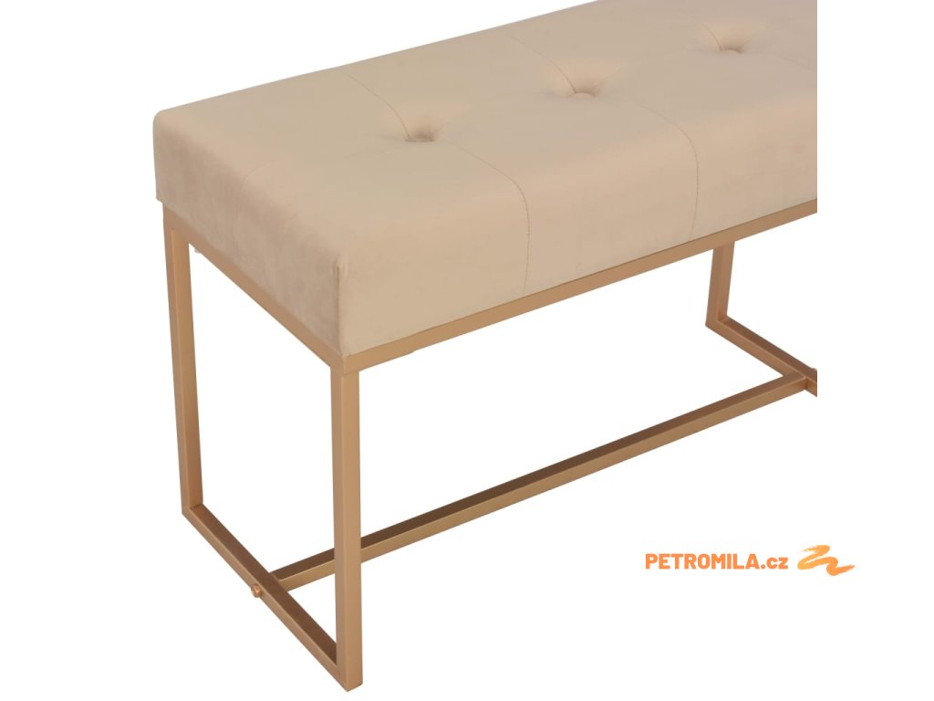 Béžové sametové čalounění je hebké na dotek a nesmírně pohodlné a svou barevností prozáří váš byt. Nohy z práškováním ošetřeného železa lavici dodávají na stabilitě a odolnosti. Lavička elegantním způsobem ozdobí vaši domácnost a stane se neodmyslitelnou součástí vašeho pokoje.