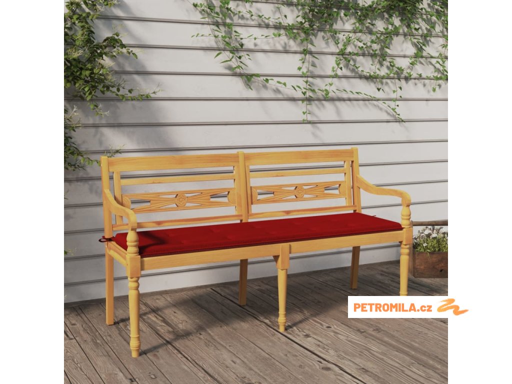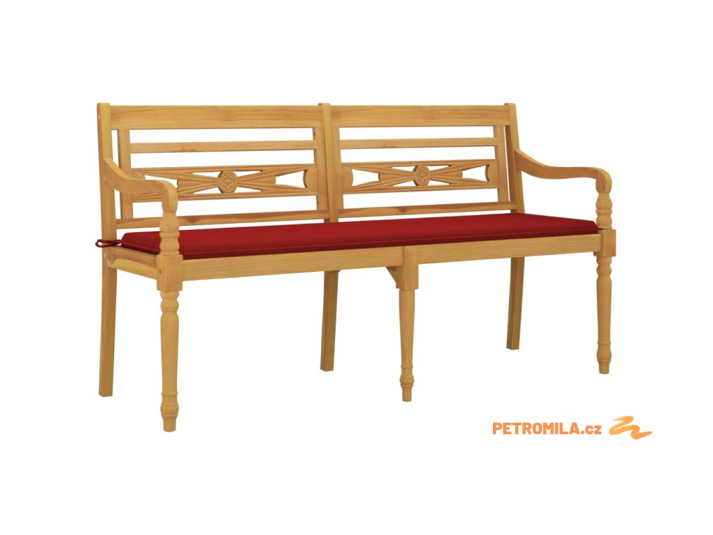 Lavice Batavia s červenou poduškou 150 cm masivní teakové dřevo
