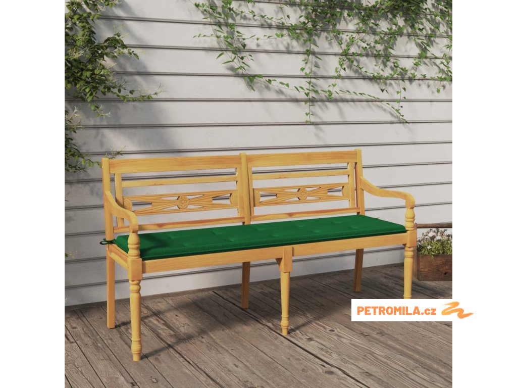 Lavice Batavia s Zelená poduškou 150 cm masivní teakové dřevo