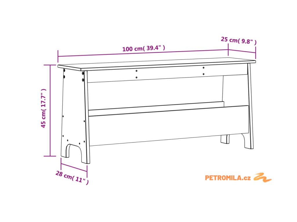 Lavice do předsíně 100 x 28 x 45 cm masivní borovice