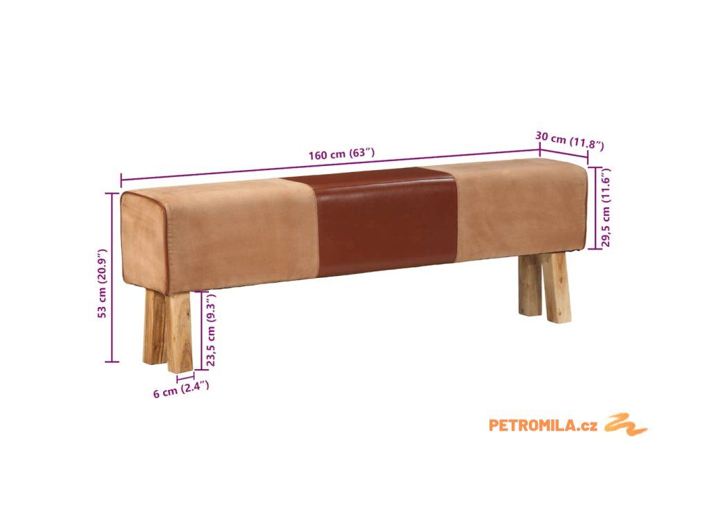 Lavice gymnastický kůň 160 cm hnědá pravá kůže a mangovník