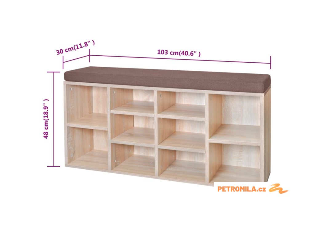 Lavička poskytuje dostatečný prostor pro uskladnění 10 párů bot. Její horní strana je čalouněná látkou a polstrovaná pěnou, takže při zouvání a obouvání můžete pohodlně sedět. Botník je vyroben z vysoce kvalitních materiálů, takže je velmi robustní a odolný.