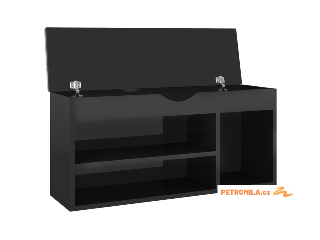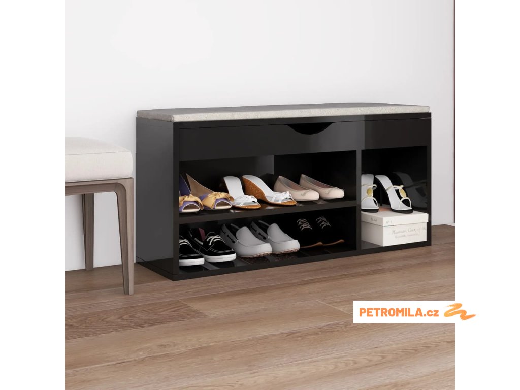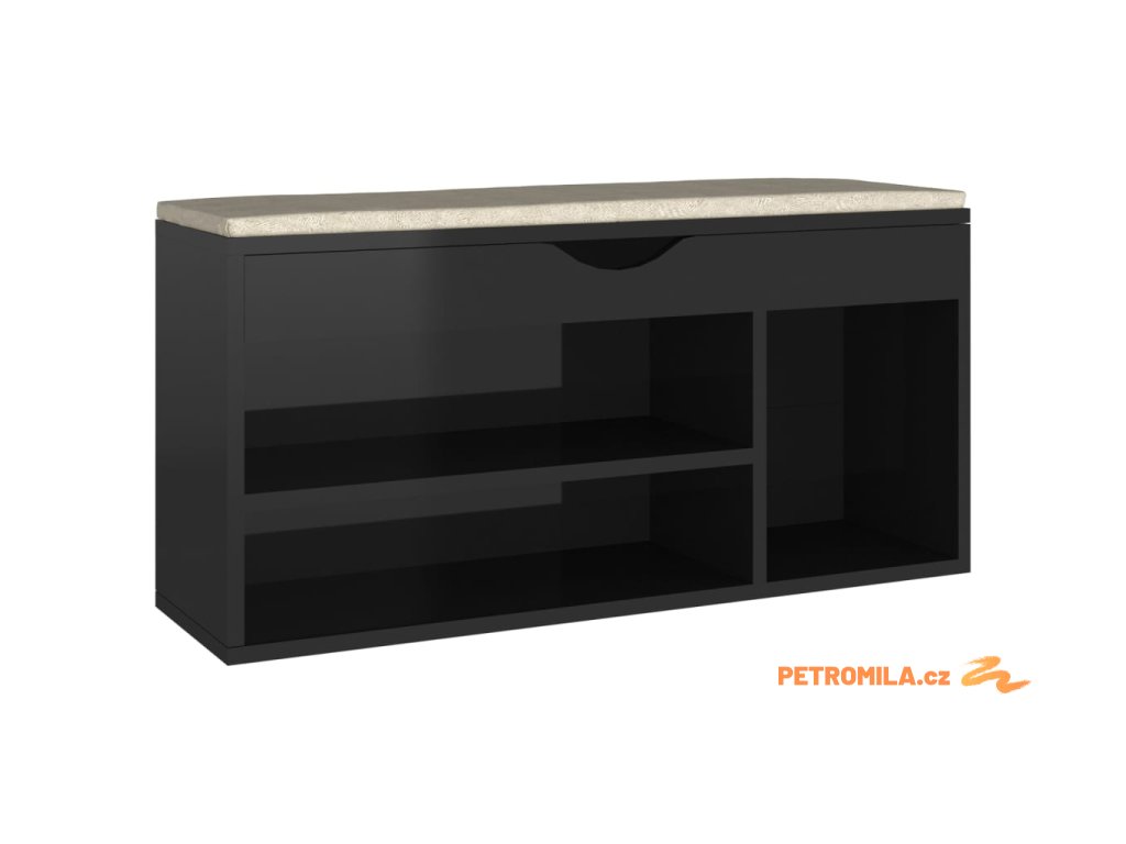Lavice s botníkem a poduškou černá lesklá 104x30x49 cm kompozit