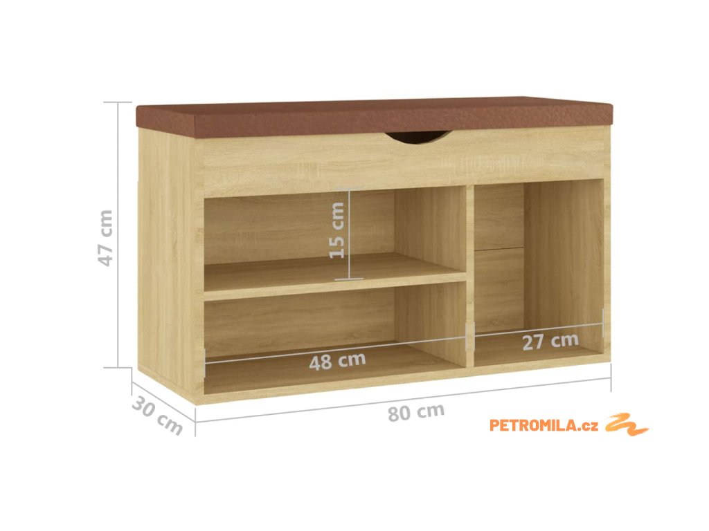 Mějte obuv přehledně uspořádanou a vždy po ruce v tomto botníku! Zároveň slouží jako lavice s poduškou, která vám poskytne pohodlné posezení a odpočinek.