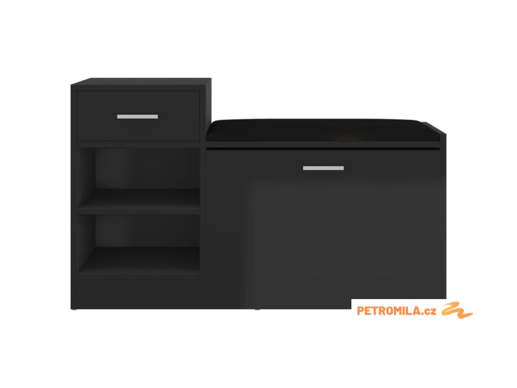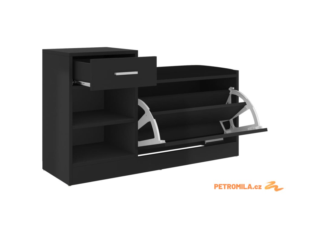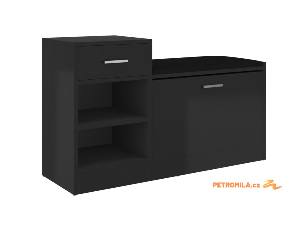 Lavice s botníkem černá vysoký lesk 94,5x31x57 cm kompozit