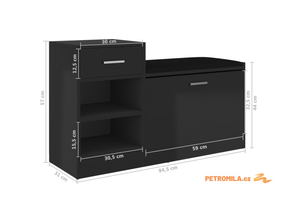 - Celkové rozměry: 94,5 x 31 x 57 cm (Š x H x V)