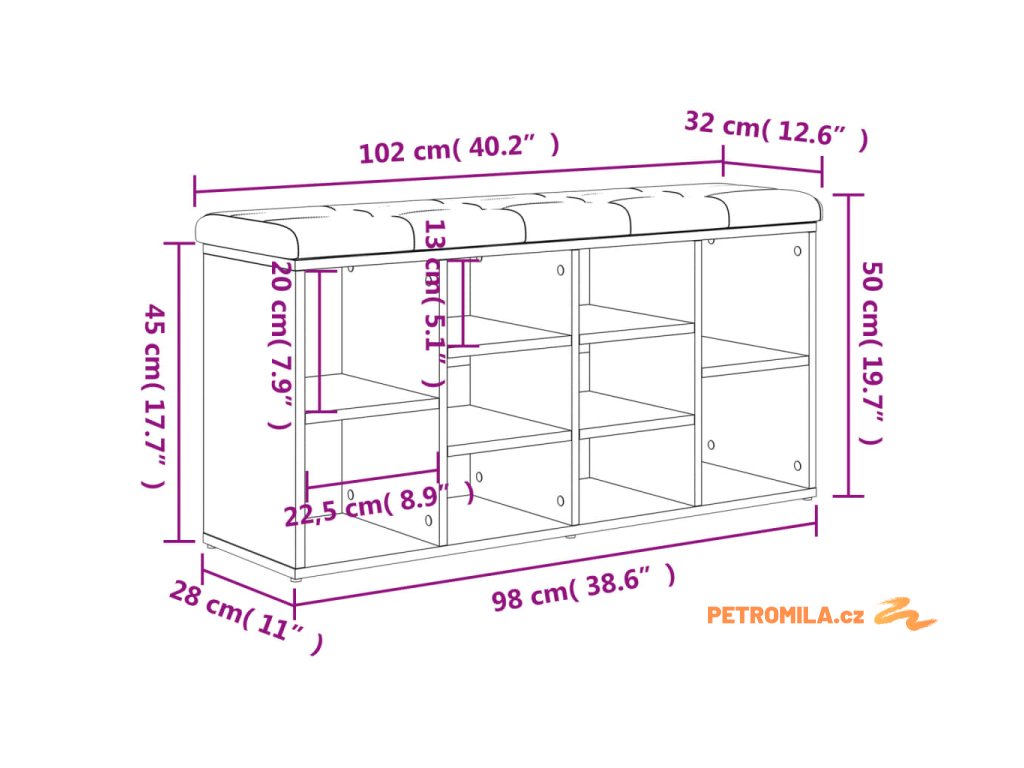 - Všestranné použití: Můžete ji využít jako lavici na uschování bot u vás na chodbě nebo také jako úložnou lavici v obývacím pokoji.