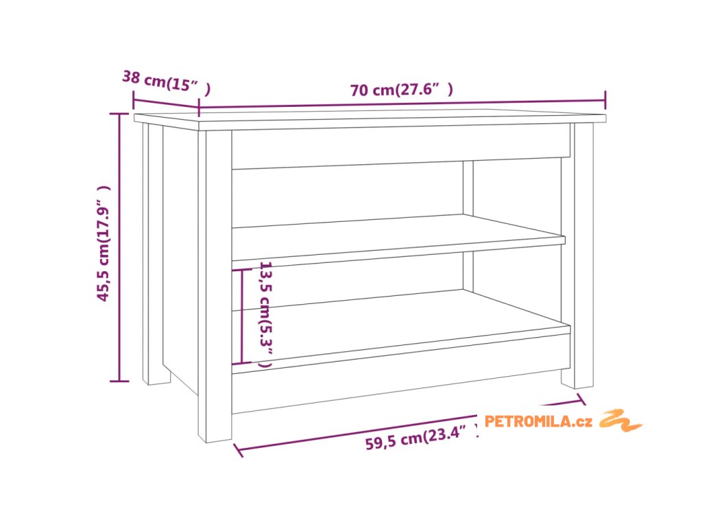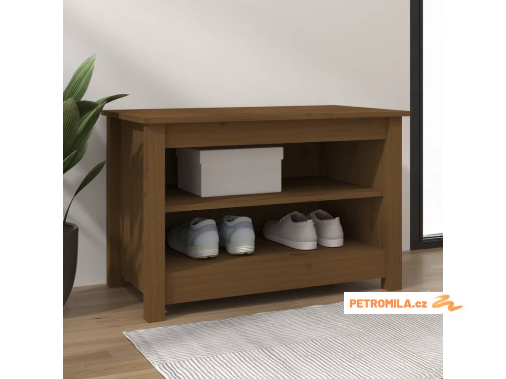 Lavice s botníkem medově hnědá 70x38x45,5 cm masivní borovice