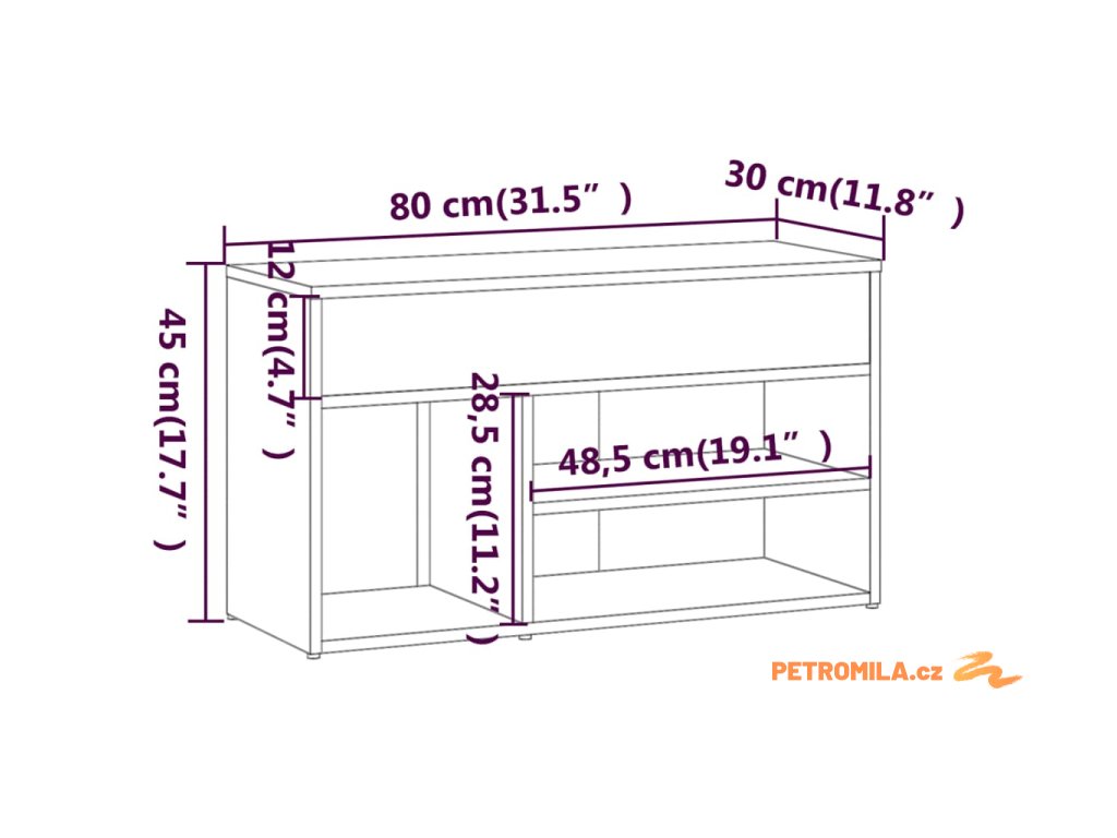 - Rozměry: 80 x 30 x 45 cm (D x Š x V)