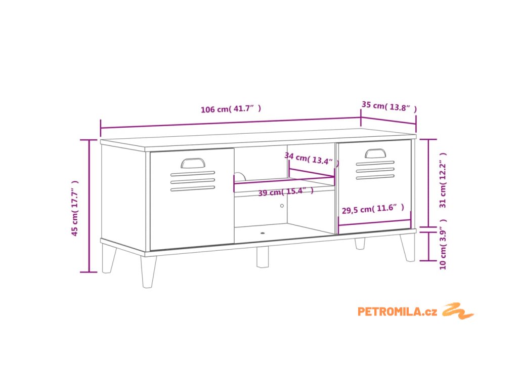 - Rozměry: 106 x 35 x 45 cm (Š x H x V)