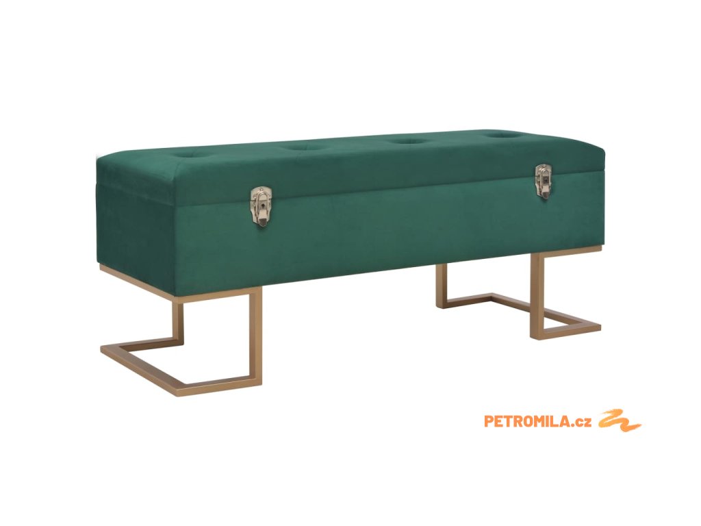 Sametové čalounění v zelené barvě je měkké na dotek a velmi pohodlné a svou barvou oživí každý interiér. Disponuje vestavěným úložným prostorem, který poskytuje dodatečné místo pro uschování nejrůznějších věcí. Nohy ze železa s práškovým nástřikem a zlatým nátěrem lavičce dodávají na stabilitě a životnosti. Naše lavice vnese do vašeho interiéru autentické kouzlo a stane se nedílnou součástí vašeho pokoje.