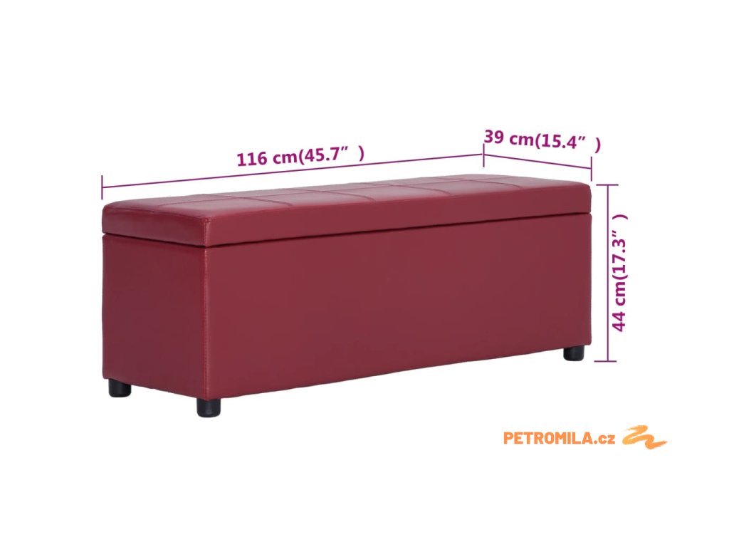 Lavice s úložným prostorem 116 cm vínová umělá kůže
