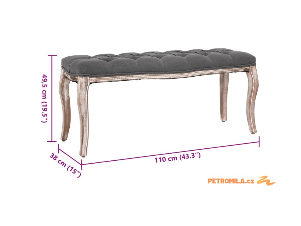 Lavice se lněným čalouněním 110 x 38 x 48 cm tmavě šedá