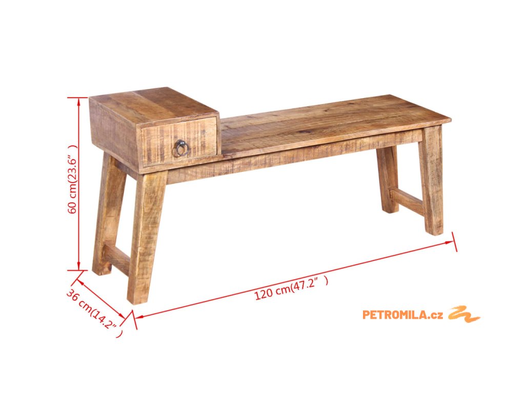 Lavice se zásuvkou masivní mangovníkové dřevo 120 x 36 x 60 cm