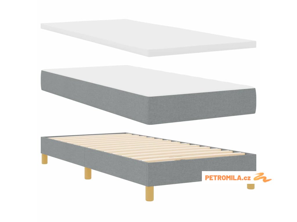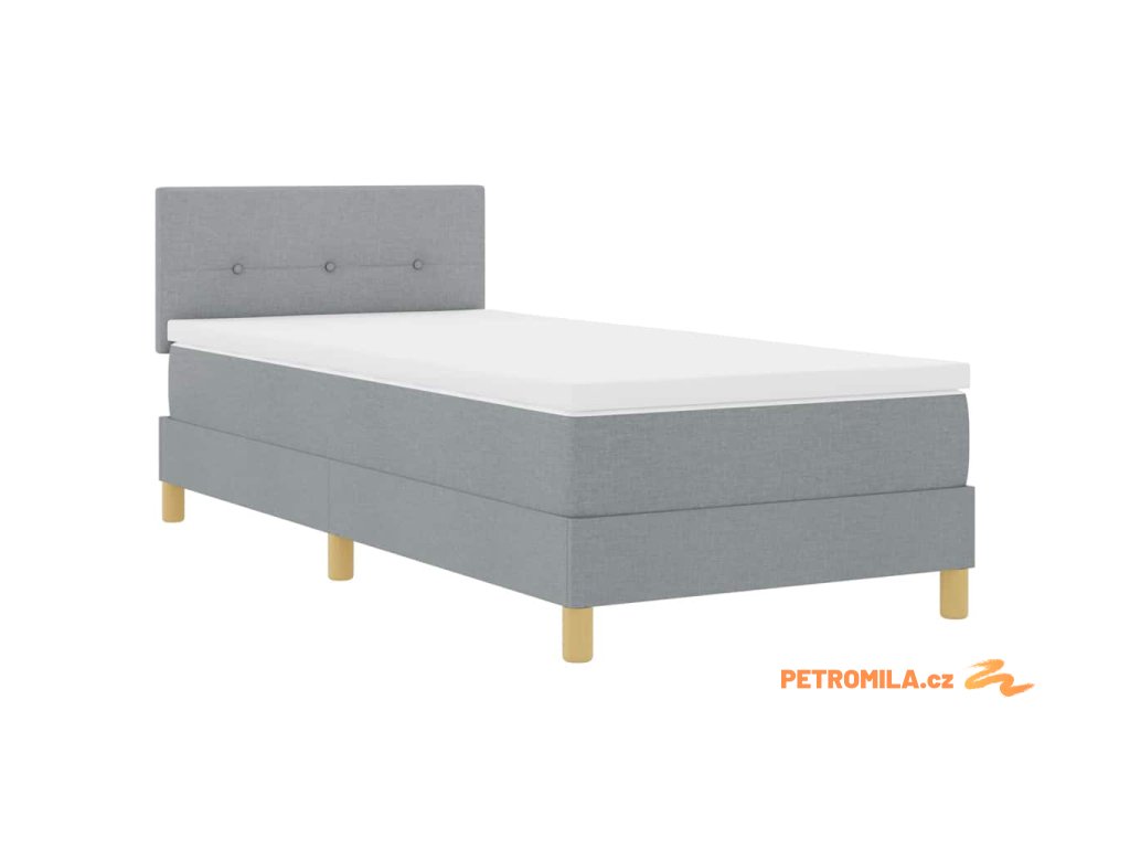 LED box pružinová postel s čelo Světle šedá 90 x 200 cm textil