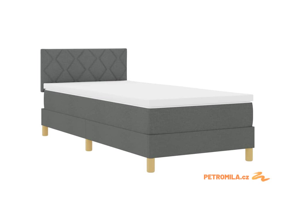 LED box pružinová postel s čelo Tmavě šedá 90 x 200 cm textil