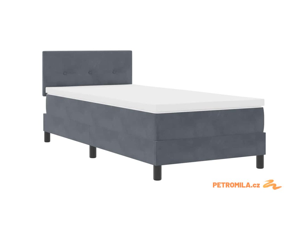 LED box pružinová postel s matrací Tmavě šedá 90 x 200 cm samet