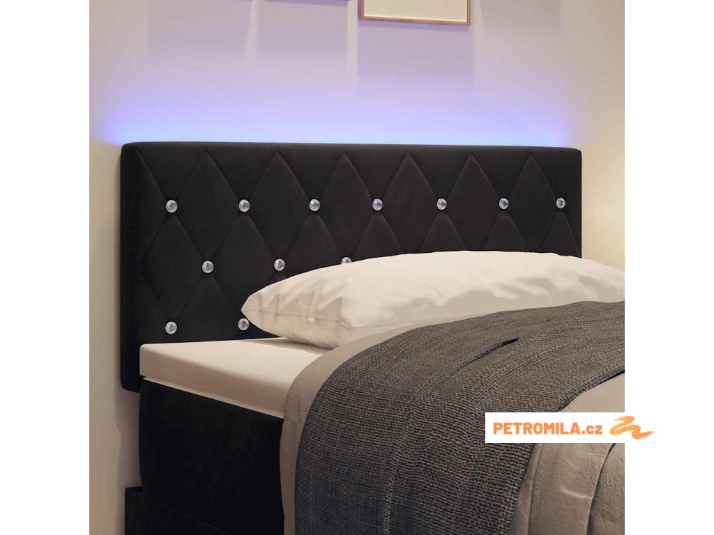 LED čelo postele s LED pásovými světly s čelo Černá 90 cm samet