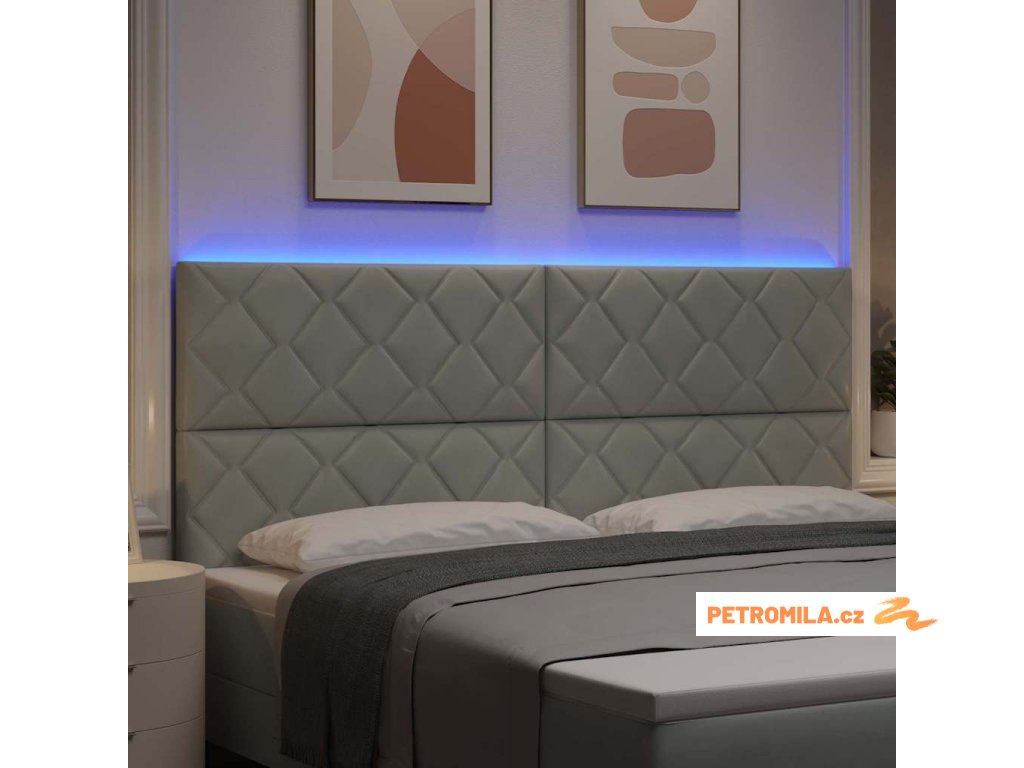 LED čelo postele s LED pásovými světly Světle šedá 200 cm samet