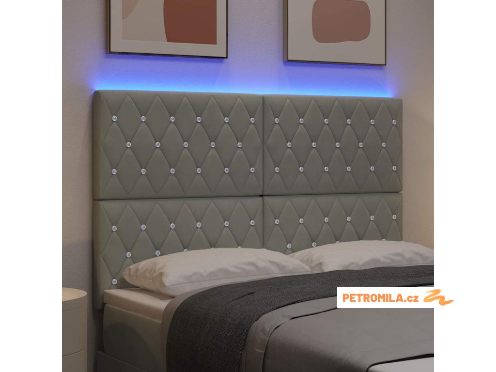 LED čelo postele s LED pásovými světly Světle šedá 80 cm samet