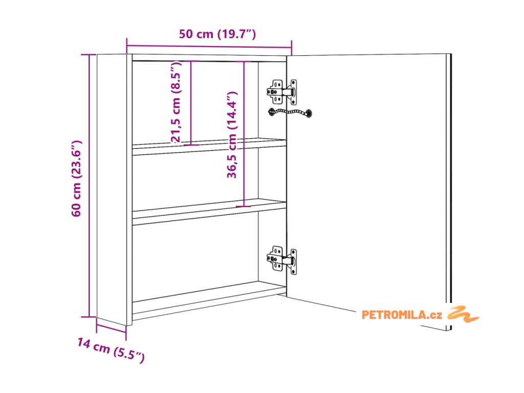 - Rozměry: 50 x 14 x 60 cm (Š x H x V)