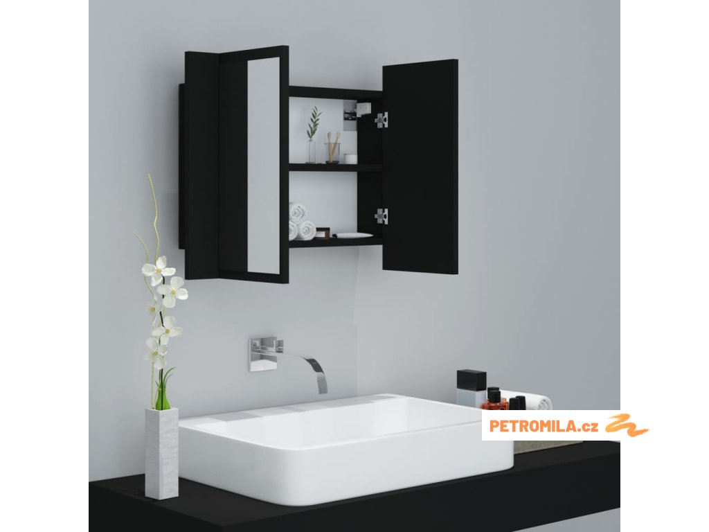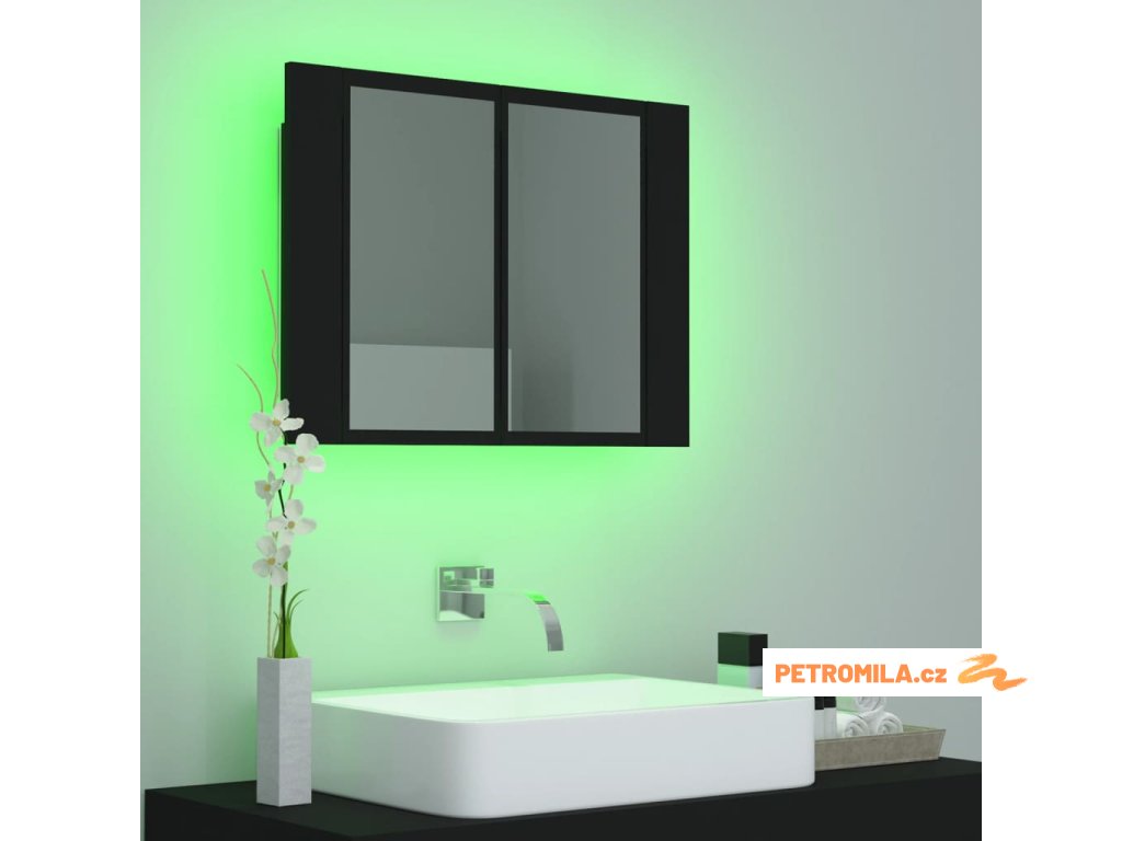 LED koupelnová skříňka se zrcadlem černá 60 x 12 x 45 cm akryl