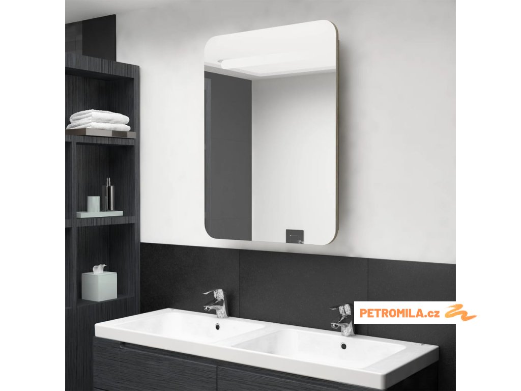 LED koupelnová skříňka se zrcadlem dub 60 x 11 x 80 cm