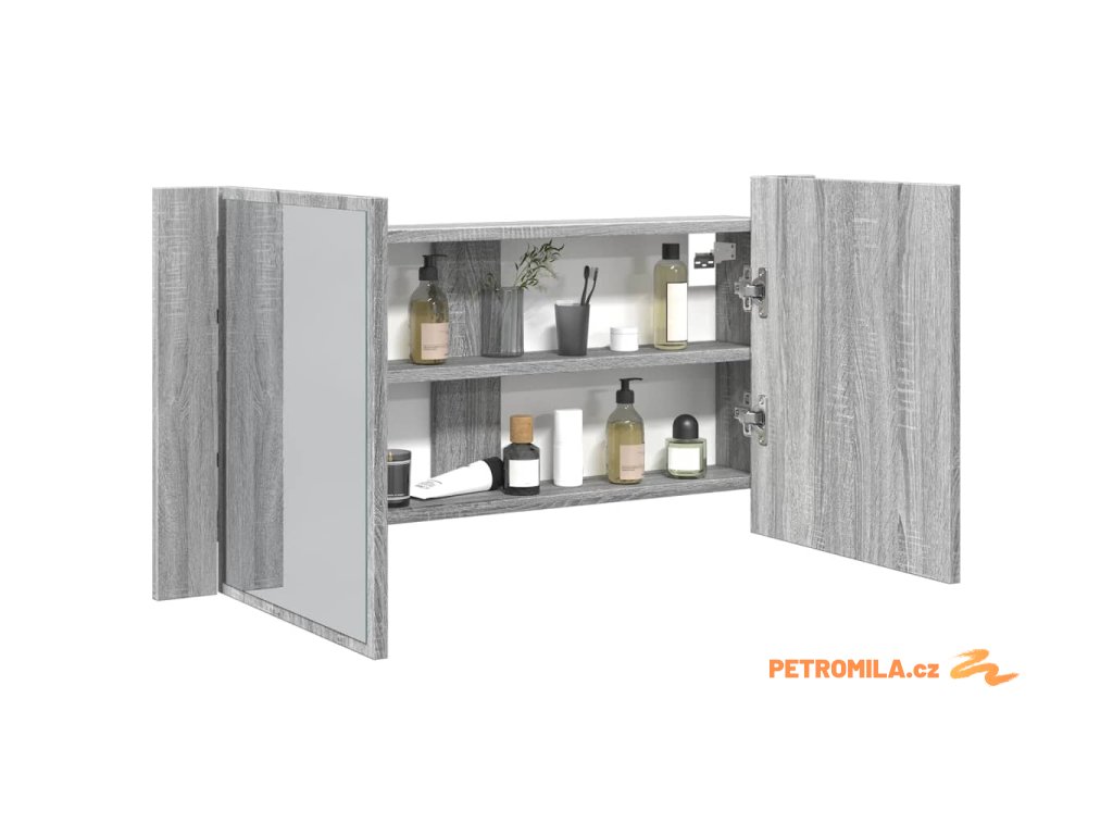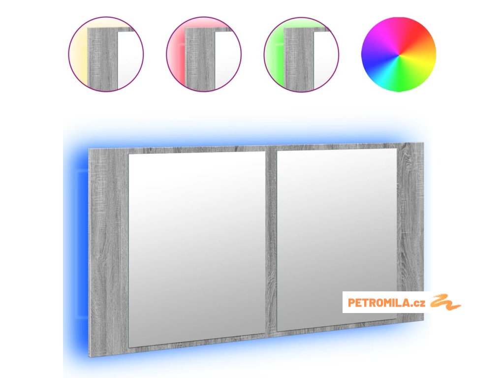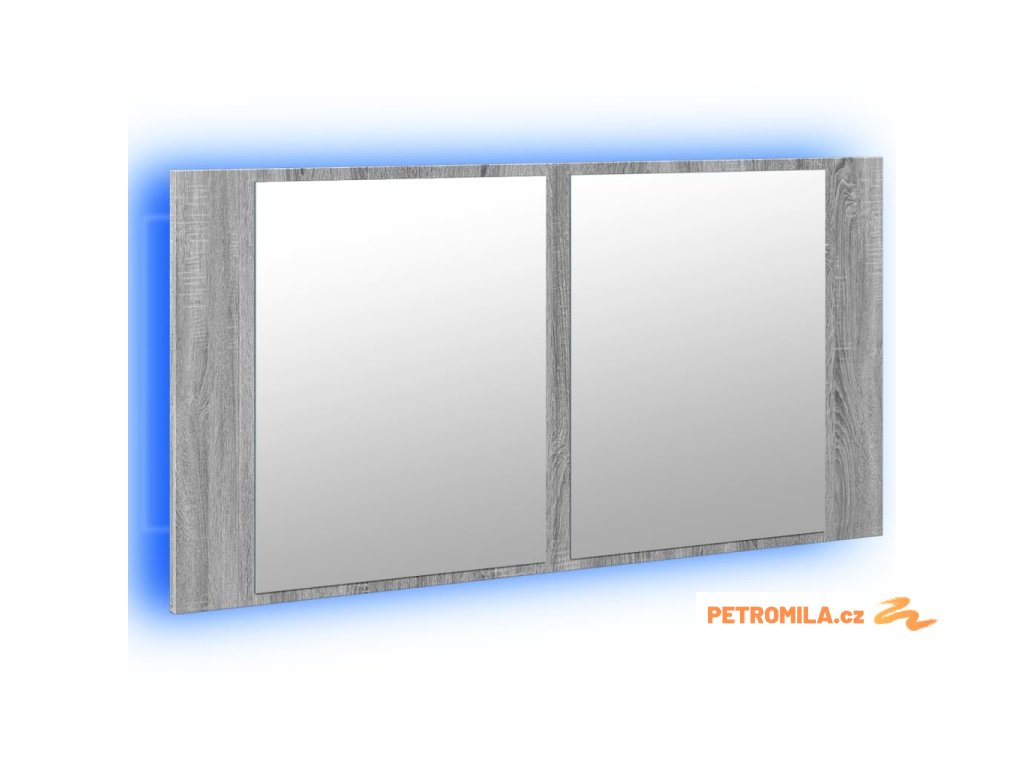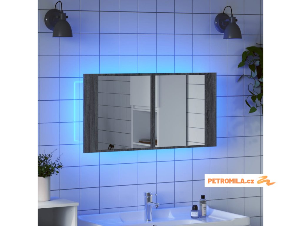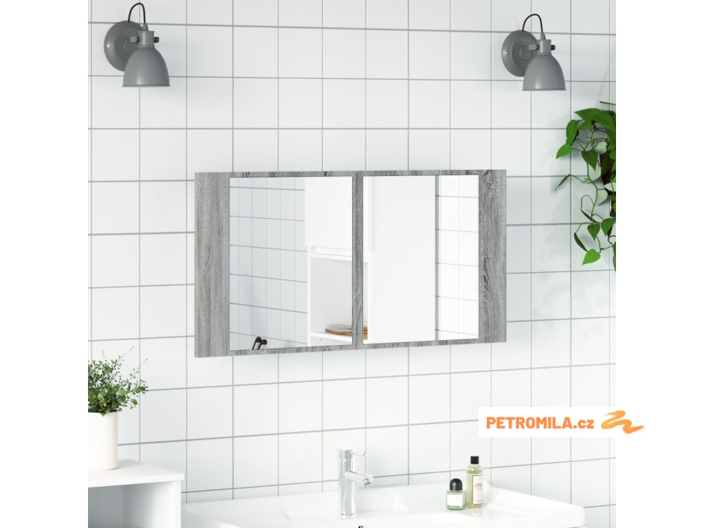 LED koupelnová skříňka se zrcadlem šedá sonoma 90x12x45cm akryl