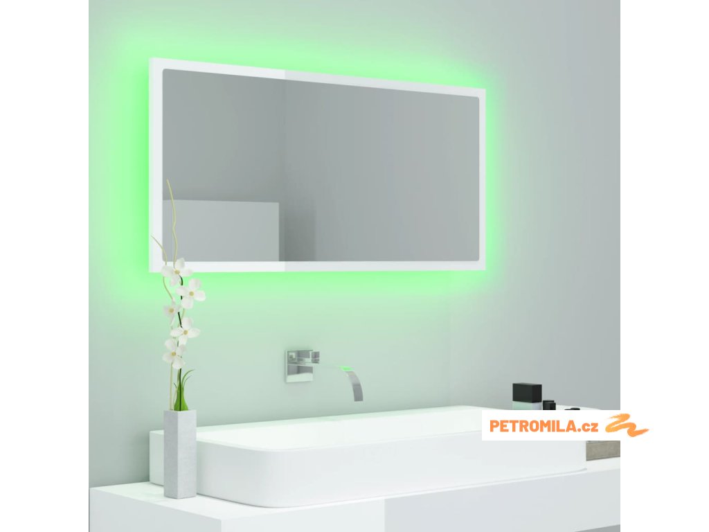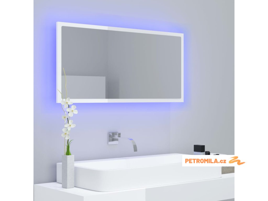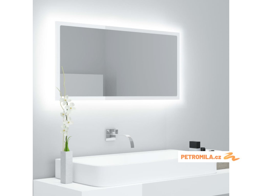 LED koupelnové zrcadlo bílé vysoký lesk 90x8,5x37 cm akrylové