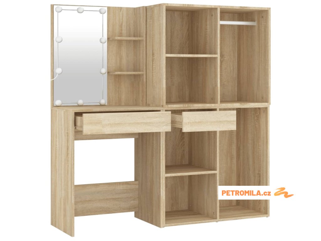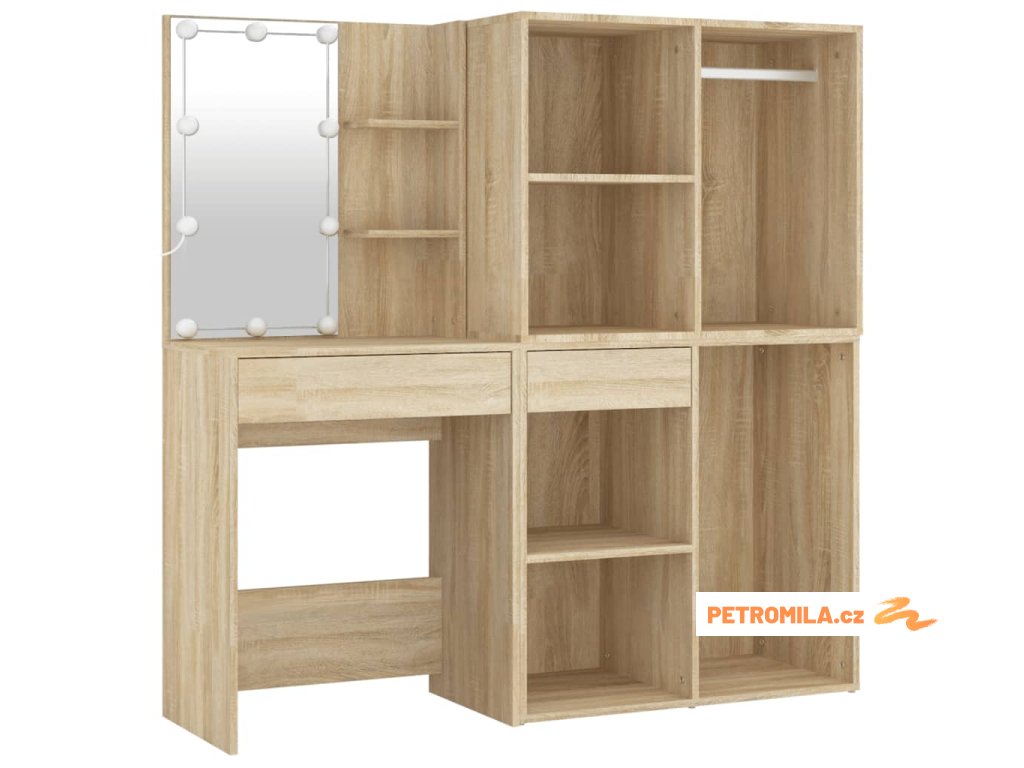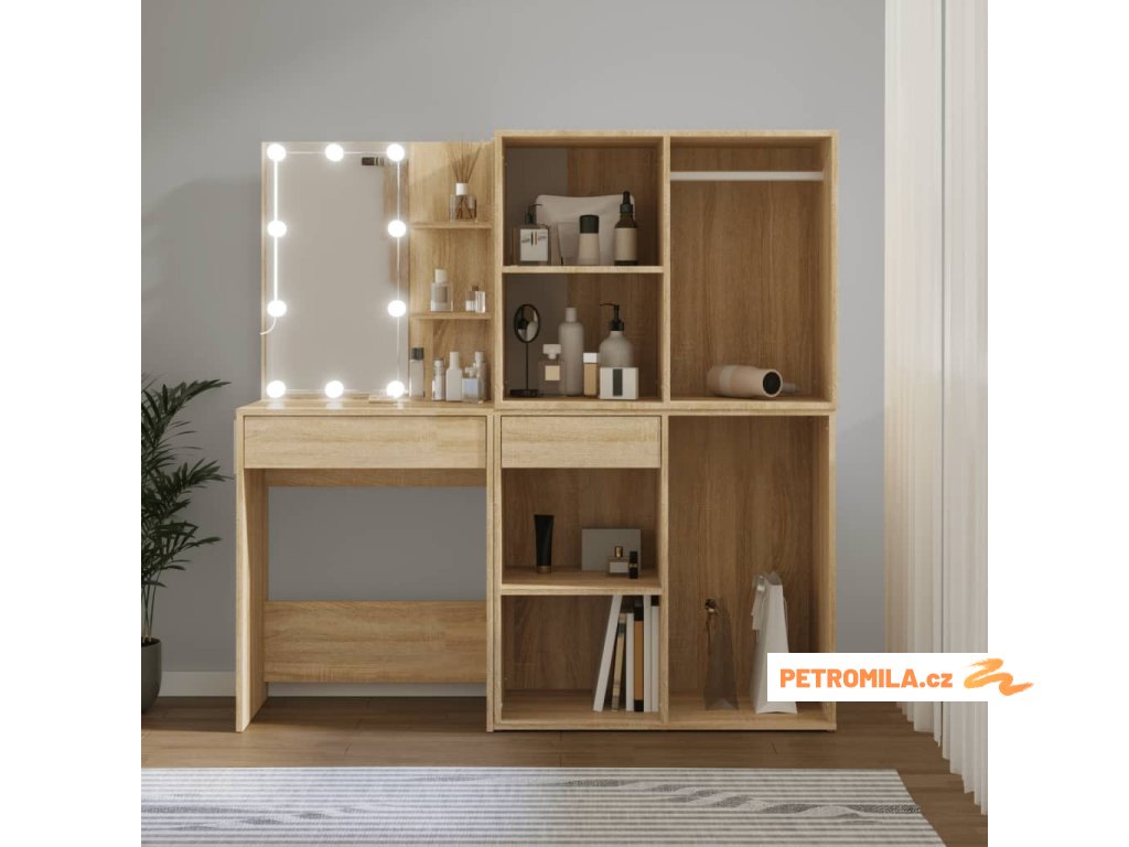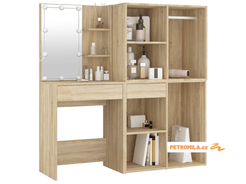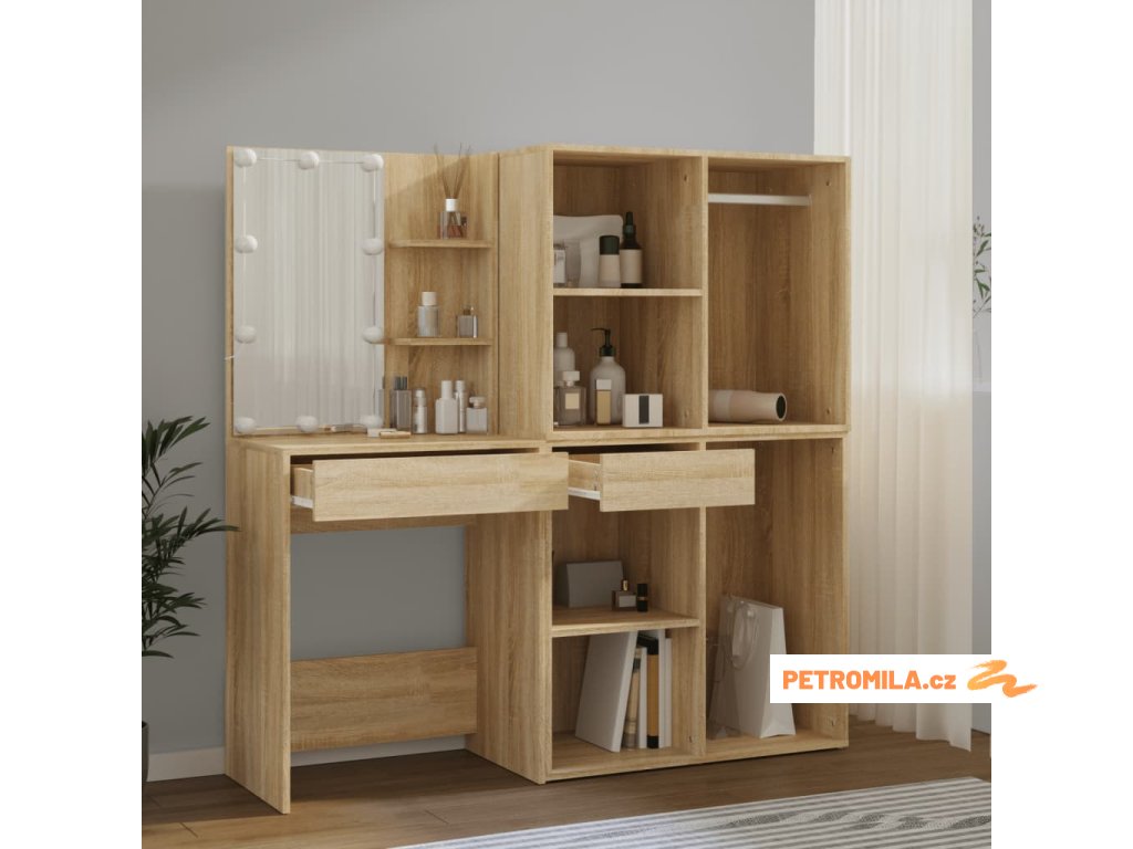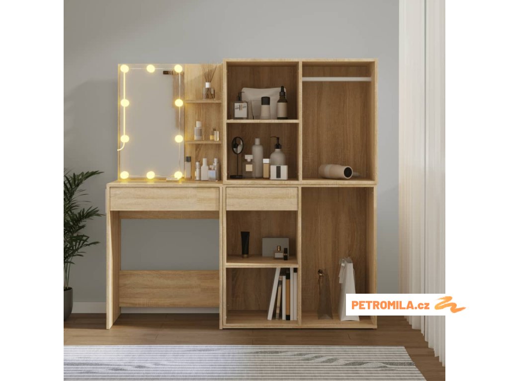 LED toaletní stolek se 2 skříňkami dub sonoma kompozitní dřevo