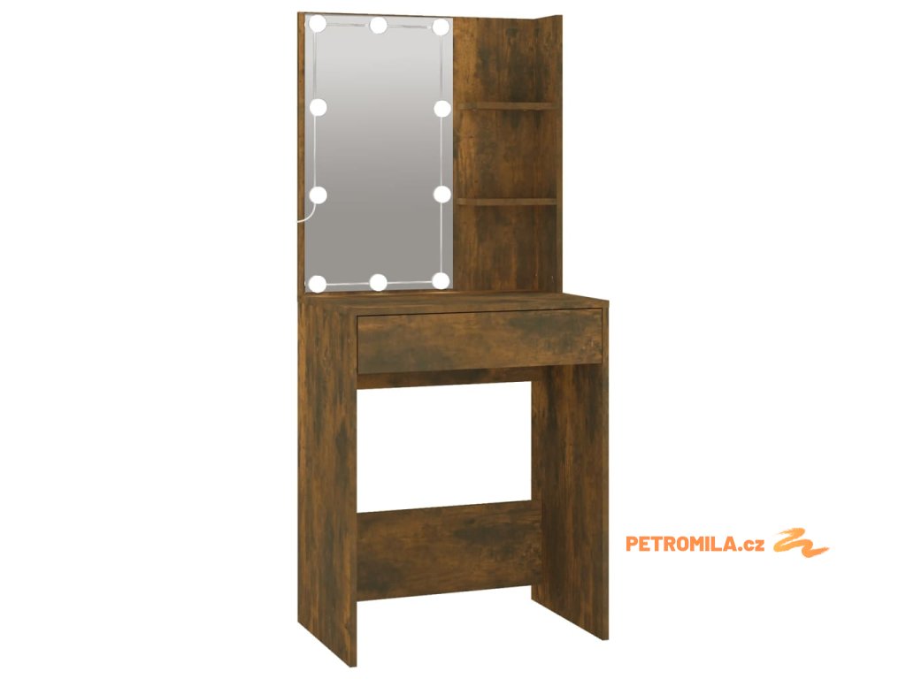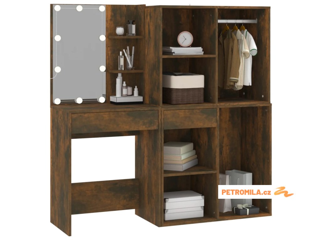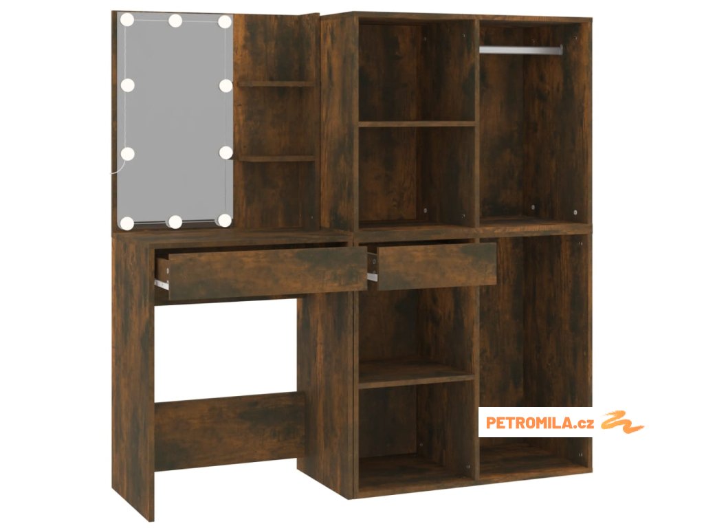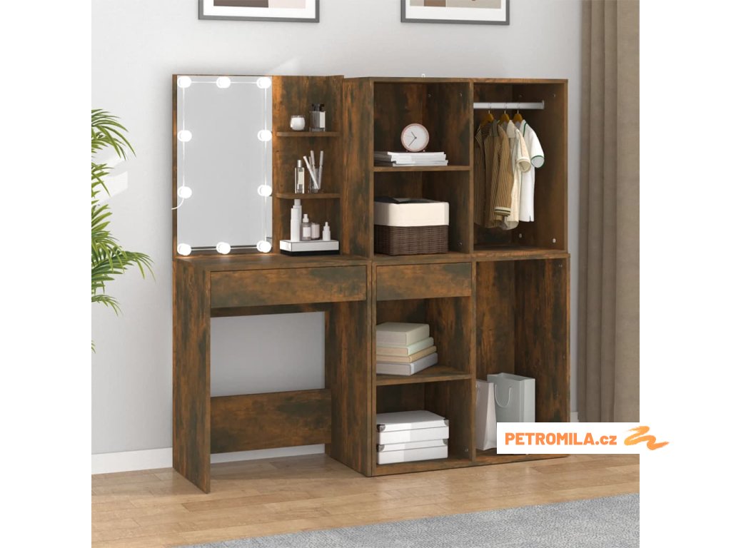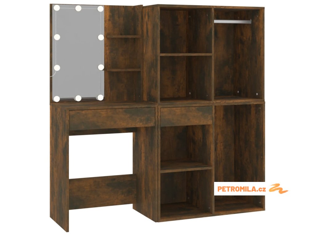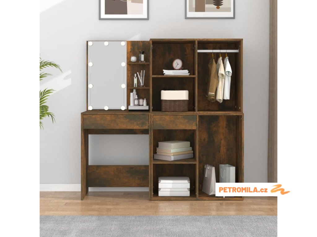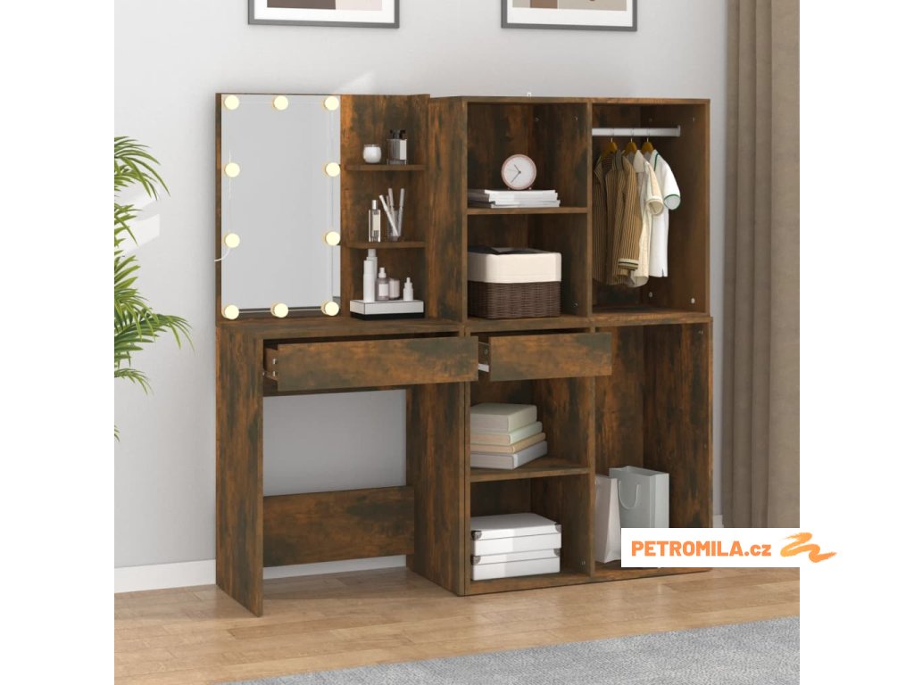 LED toaletní stolek se skříňkami kouřový dub kompozitní dřevo