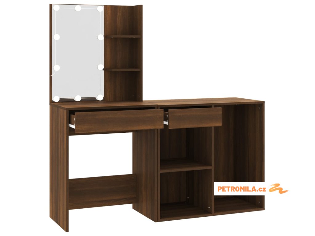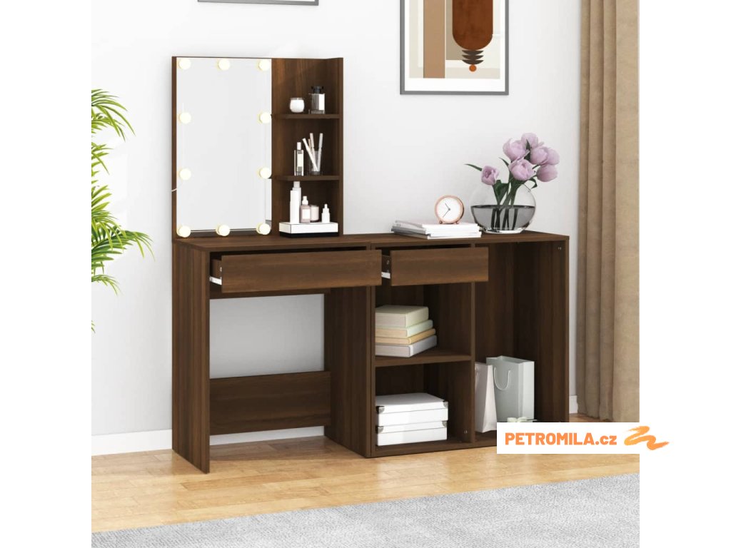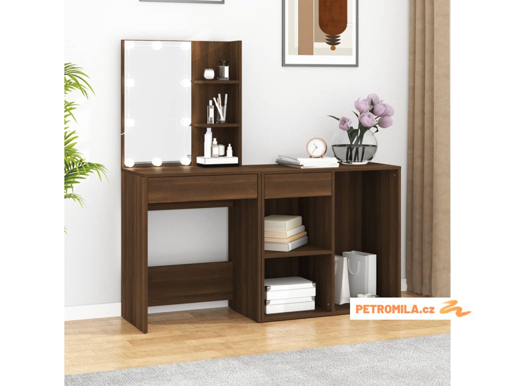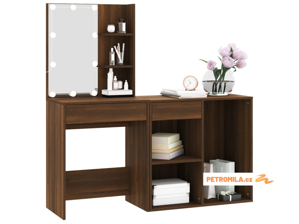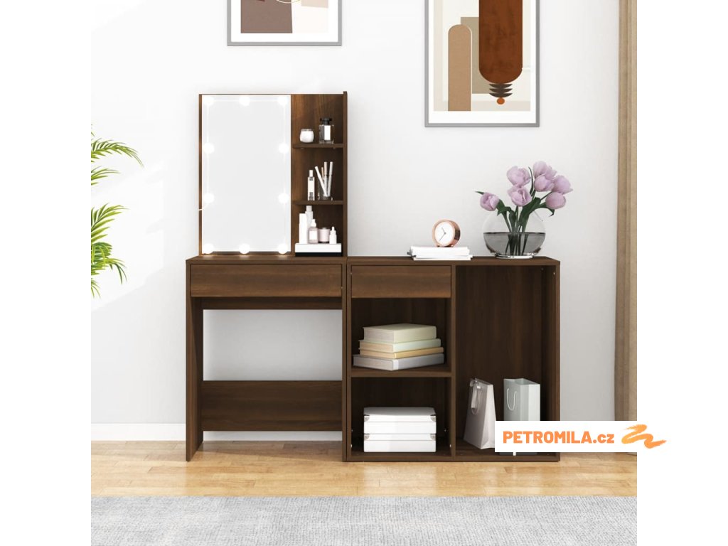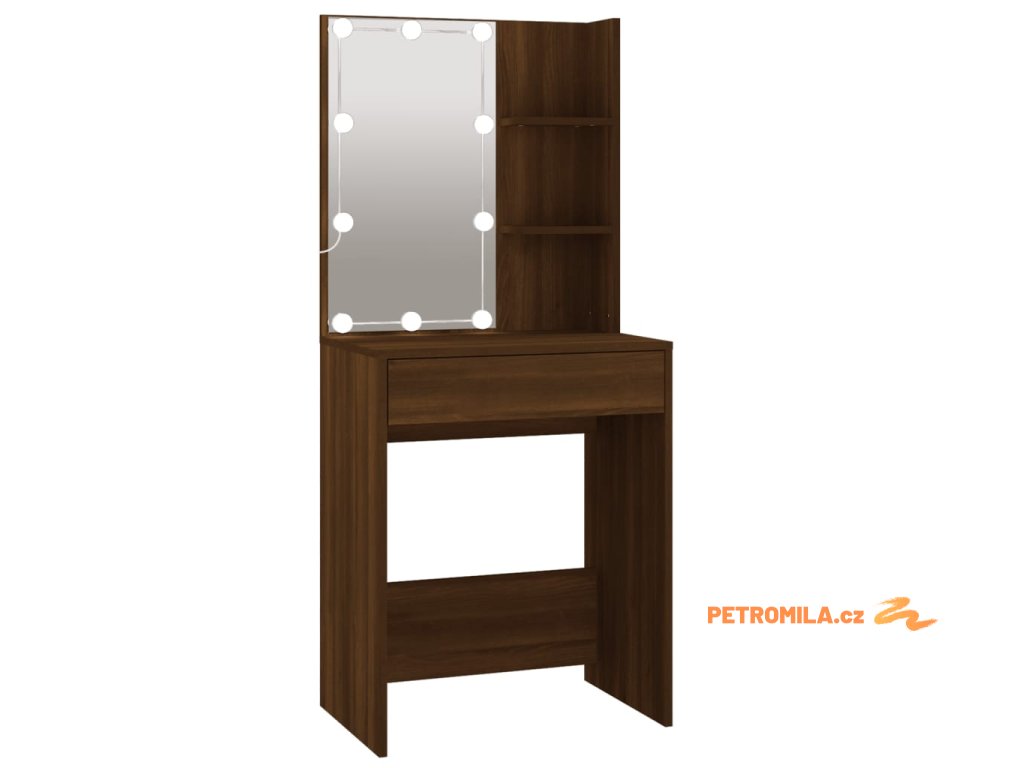 LED toaletní stolek se skříňkou hnědý dub kompozitní dřevo