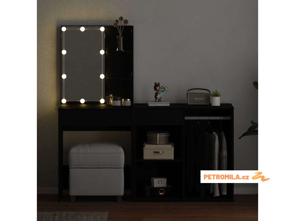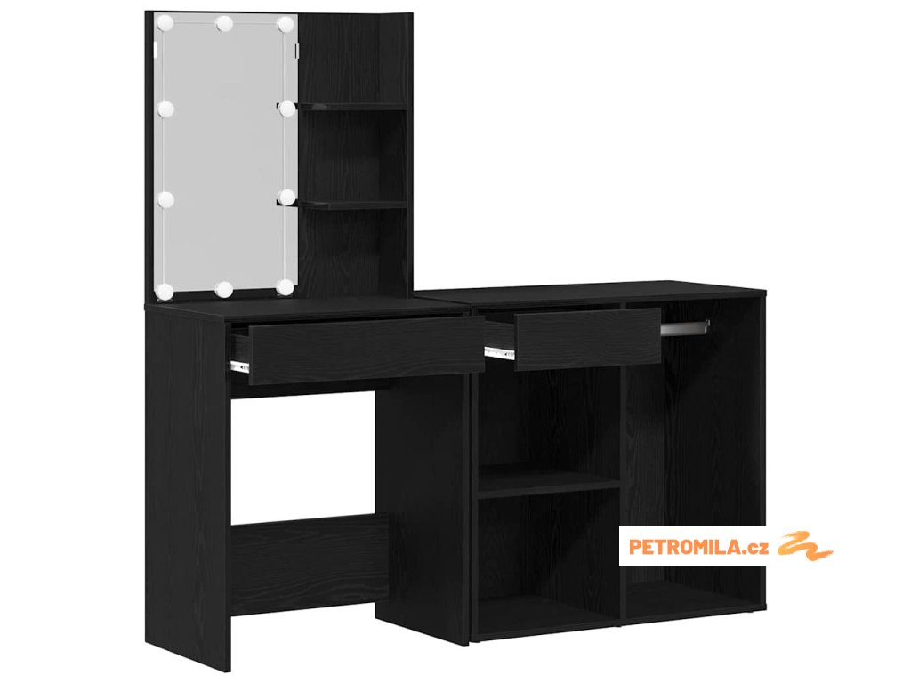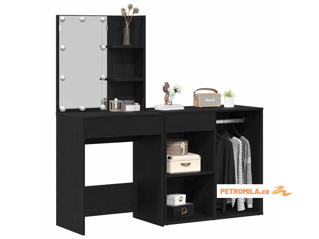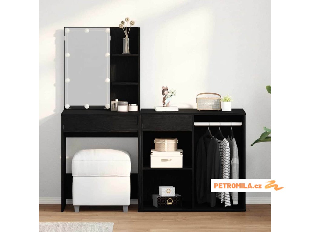 LED Toaletní stolek Set se zásuvkou Černý dub 140 x 40 x 140 cm
