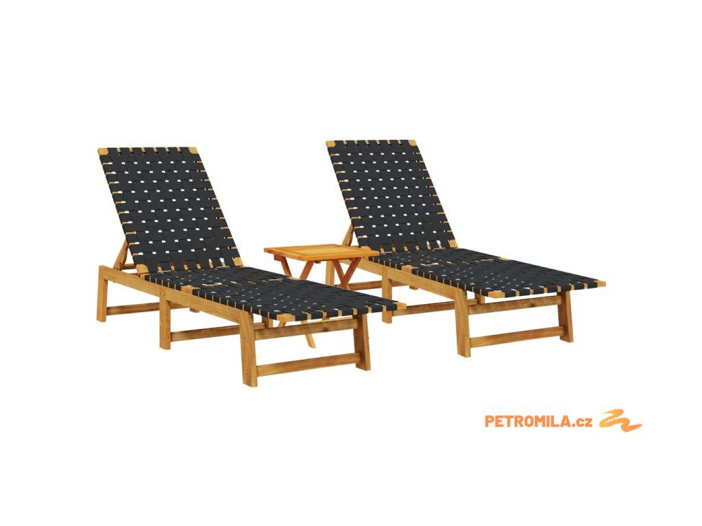 Lehátka 2 ks se stolkem černá masivní akáciové dřevo