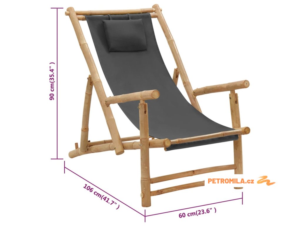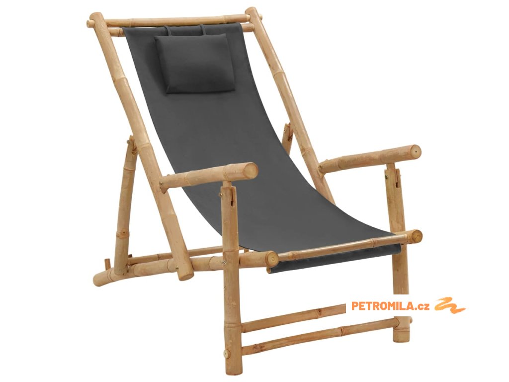 Lehátko bambus a plátno tmavě šedé