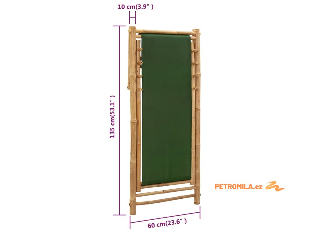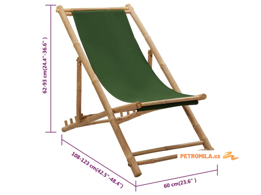 Toto lehátko je vyrobené z bambusu, pro který je typická vynikající odolnost vůči povětrnostním vlivům a dlouhá životnost. Křeslo si můžete nastavit do jedné ze 4 poloh tak, abyste si našli tu nejpohodlnější pozici pro sezení nebo ležení. Plátno, ze kterého je plážové křeslo vyrobené, je velmi pohodlné. Židle má skládací design, takže ji můžete snadno složit a uložit, když ji právě nepoužíváte.