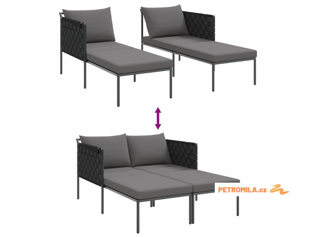 Lehátko na slunění s polštářem Antracit 115 x 153 x 69,5cm Ocel