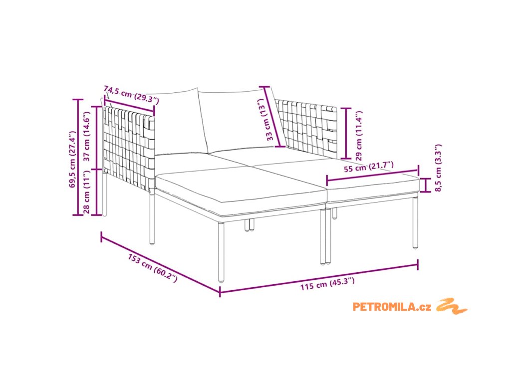 - Celkové rozměry: 115 x 153 x 69.5 cm (Š x D x V)