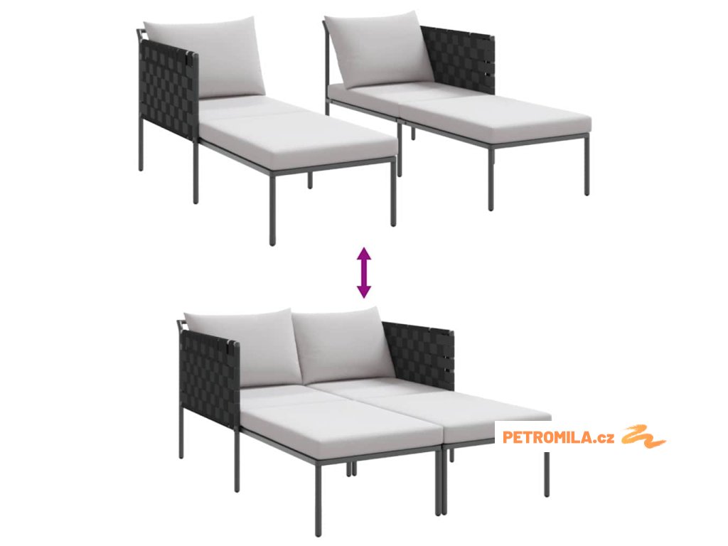 Lehátko na slunění s polštářem Antracit 115 x 153 x 69,5cm Ocel